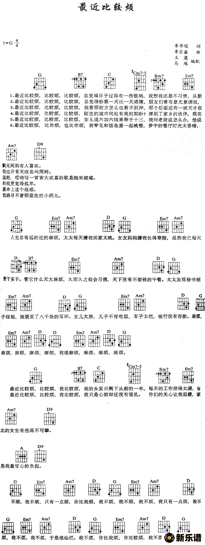 周华健演唱的最近比较烦歌词,最近比较烦吉他谱.
