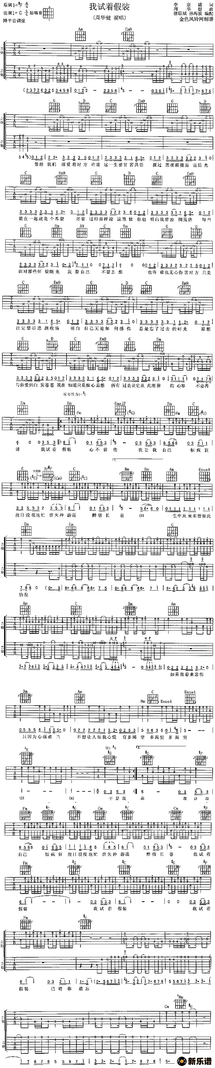 周华健演唱的我试着假装歌词,我试着假装吉他谱.