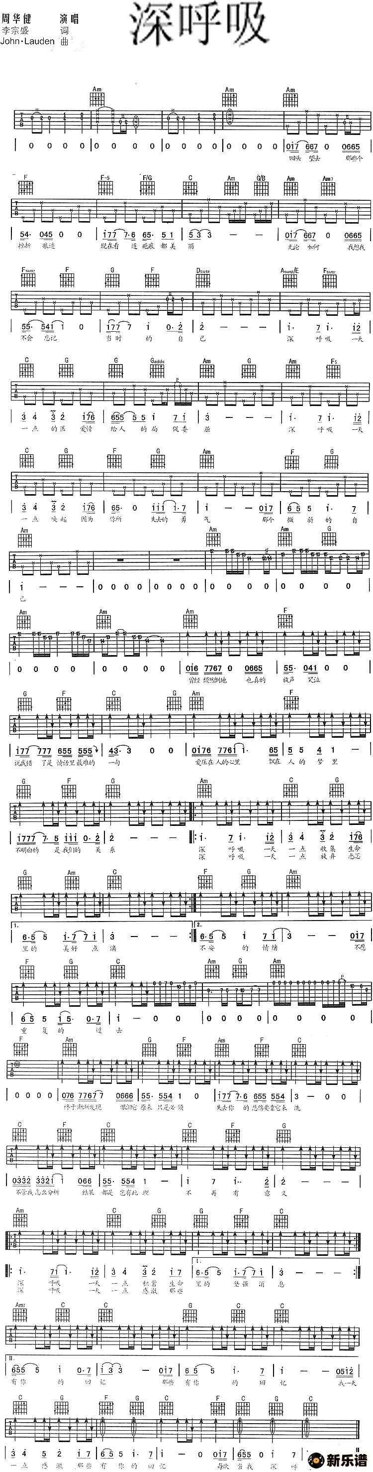 周华健演唱的深呼吸歌词,深呼吸吉他谱.