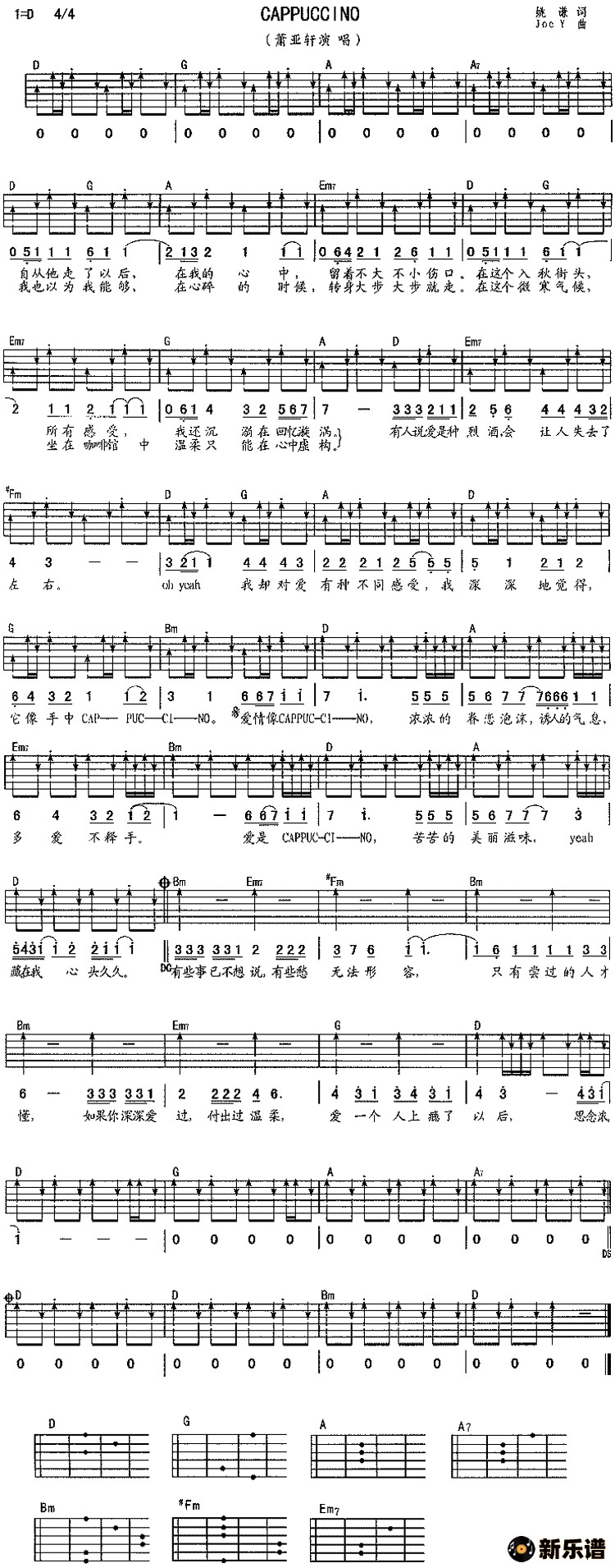 萧亚轩演唱的Cappuccino歌词,Cappuccino吉他谱.