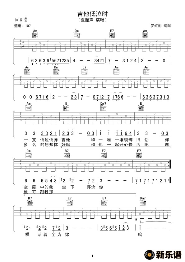演唱的吉他低泣时歌词,吉他低泣时吉他谱.