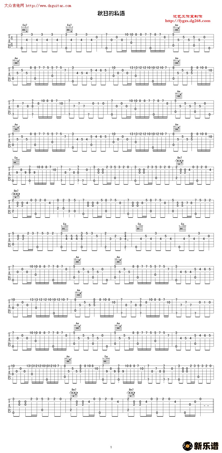 演唱的秋日私语歌词,秋日私语吉他谱.