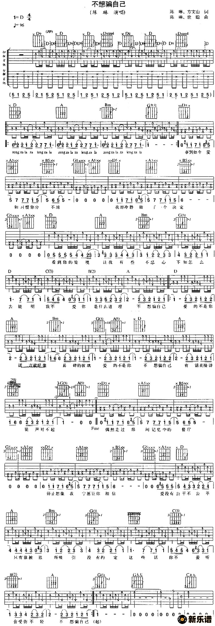 陈琳演唱的不想骗自己歌词,不想骗自己吉他谱.