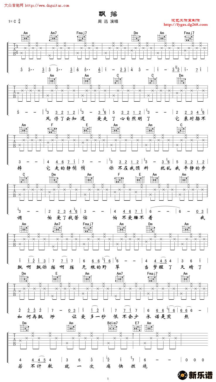 《飘摇》吉他谱