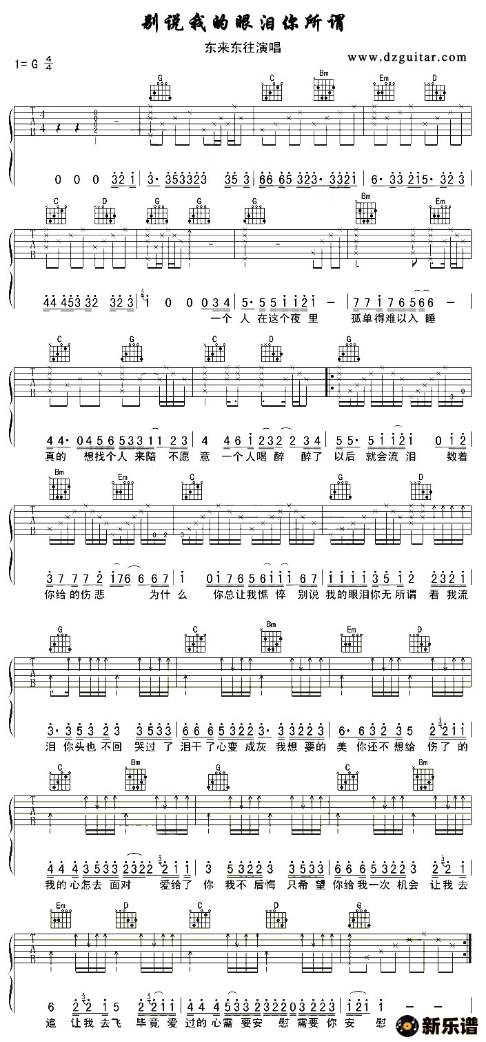 《别说我的眼泪你无所谓》吉他谱 东来东往