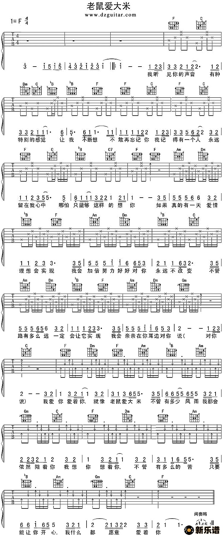 演唱的老鼠爱大米歌词,老鼠爱大米吉他谱.