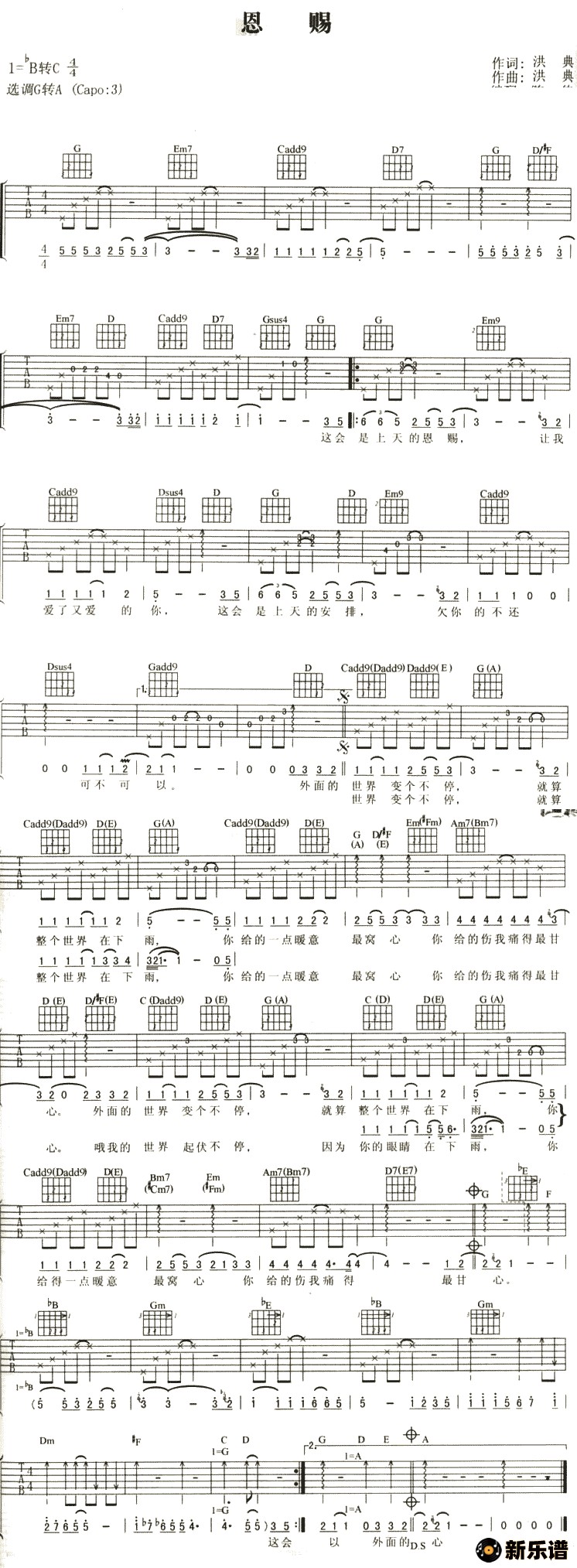 阿杜演唱的恩赐歌词,恩赐吉他谱.