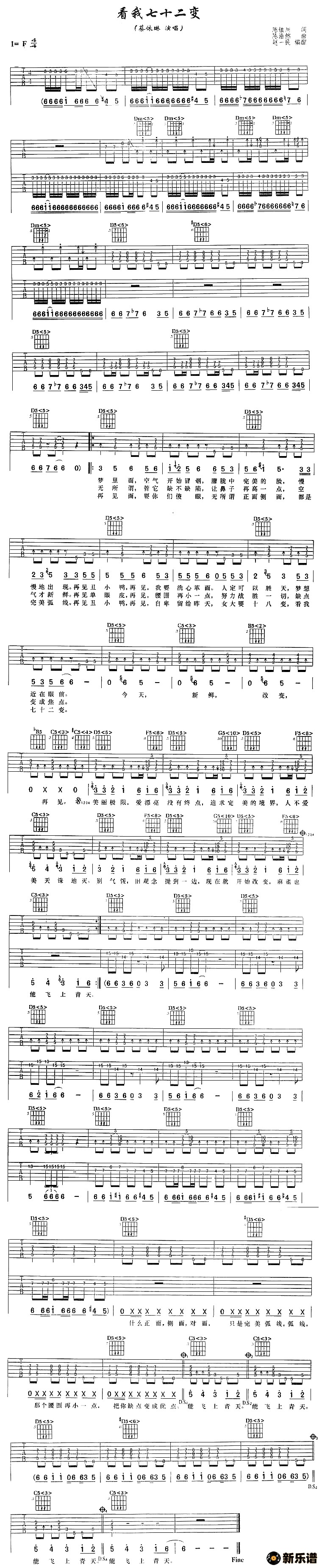 演唱的看我七十二变歌词,看我七十二变吉他谱.