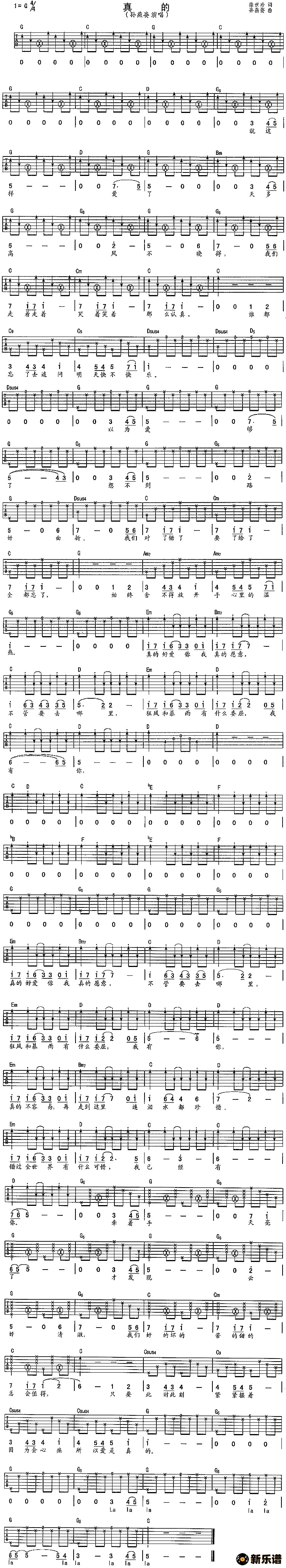孙燕姿演唱的真的歌词,真的吉他谱.
