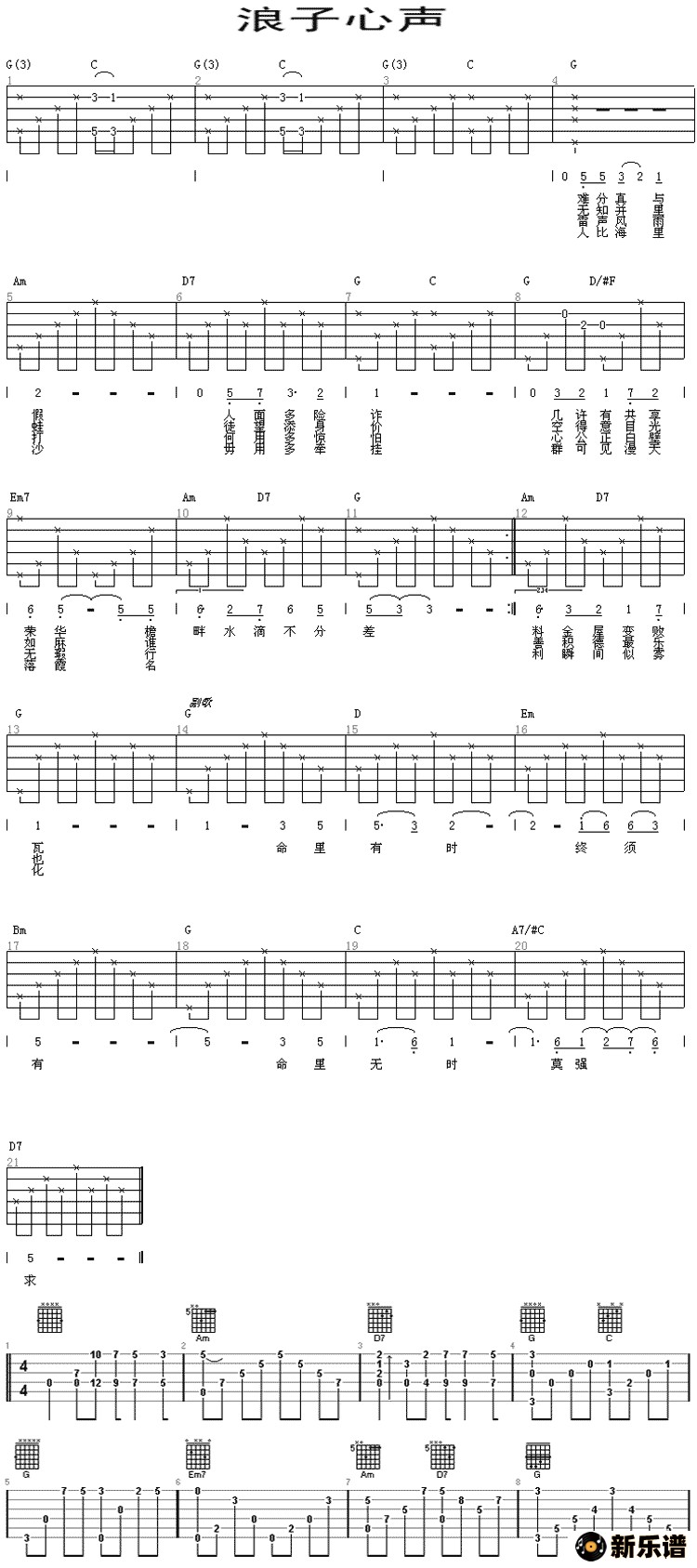 演唱的浪子心声歌词,浪子心声吉他谱.