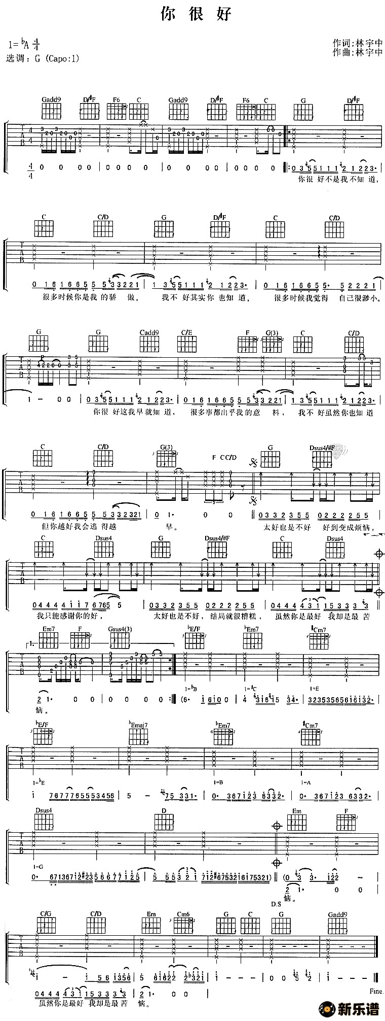阿杜演唱的你很好歌词,你很好吉他谱.