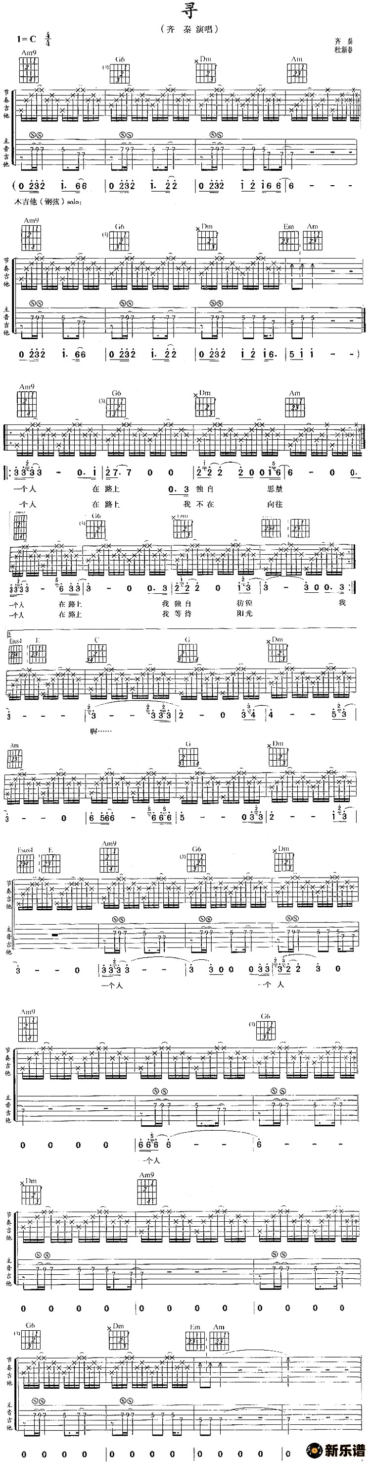 《寻》吉他谱 齐秦
