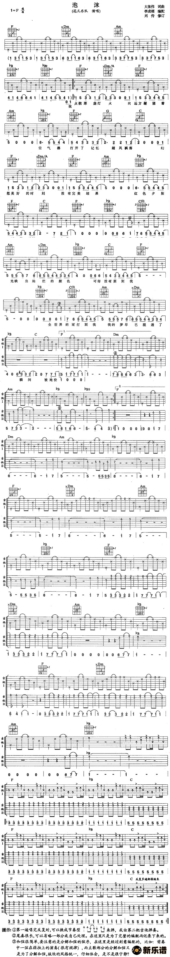《泡沫》吉他谱 花儿乐队