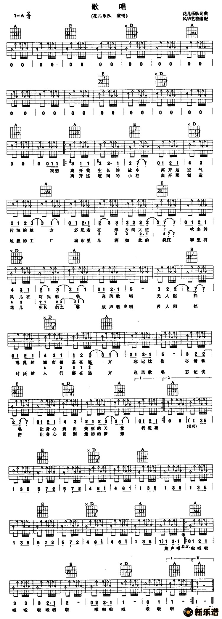 《歌唱》吉他谱 花儿乐队