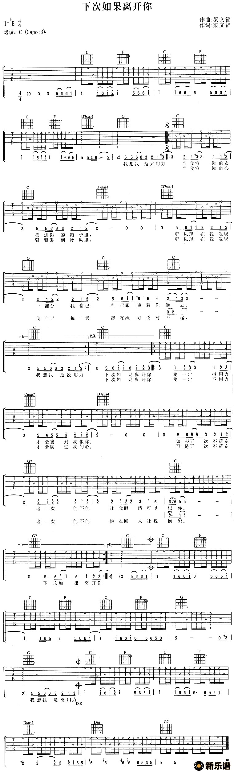 阿杜演唱的下次如果离开你歌词,下次如果离开你吉他谱.