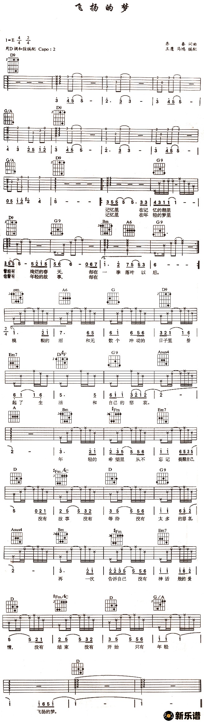 《飞扬的梦》吉他谱 齐秦