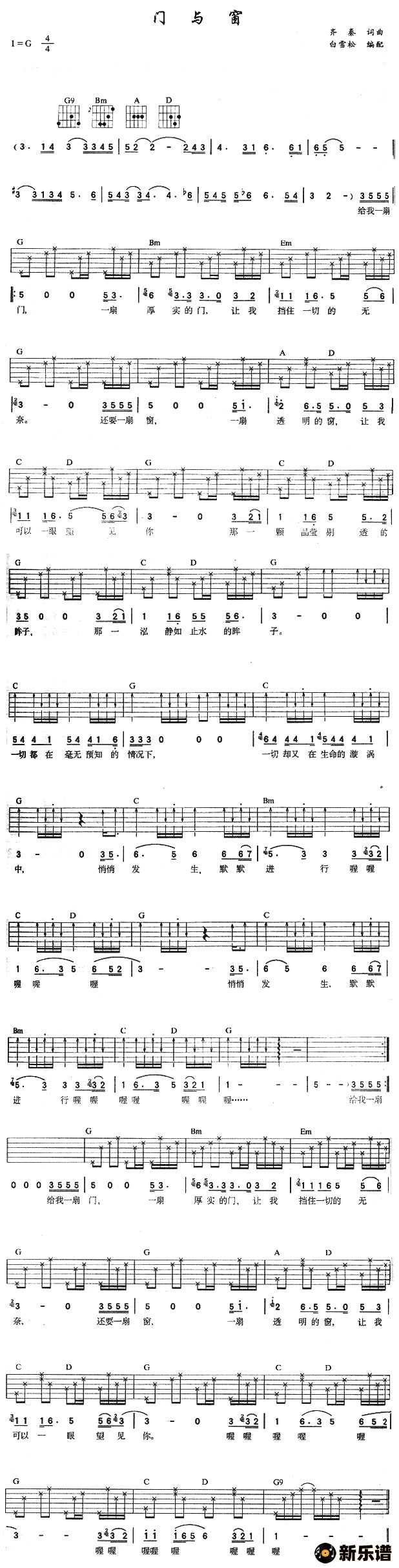 齐秦演唱的门与窗歌词,门与窗吉他谱.