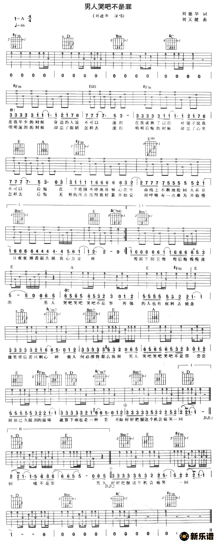 刘德华演唱的男人哭吧不是罪歌词,男人哭吧不是罪吉他谱.