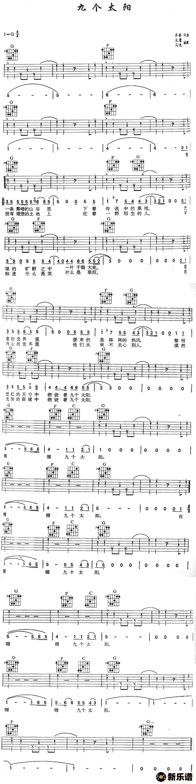 齐秦演唱的九个太阳歌词,九个太阳吉他谱.
