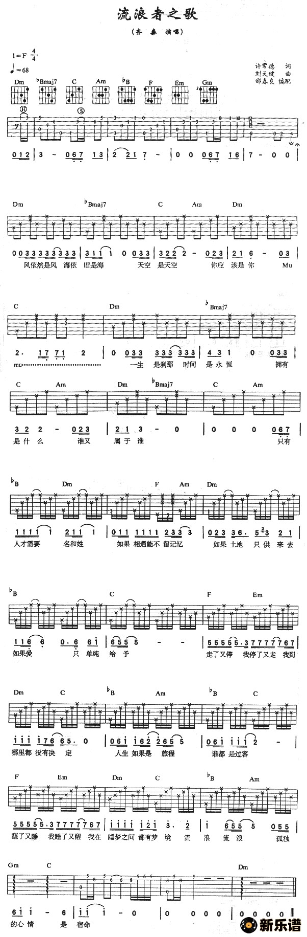 齐秦演唱的流浪者之歌歌词,流浪者之歌吉他谱.