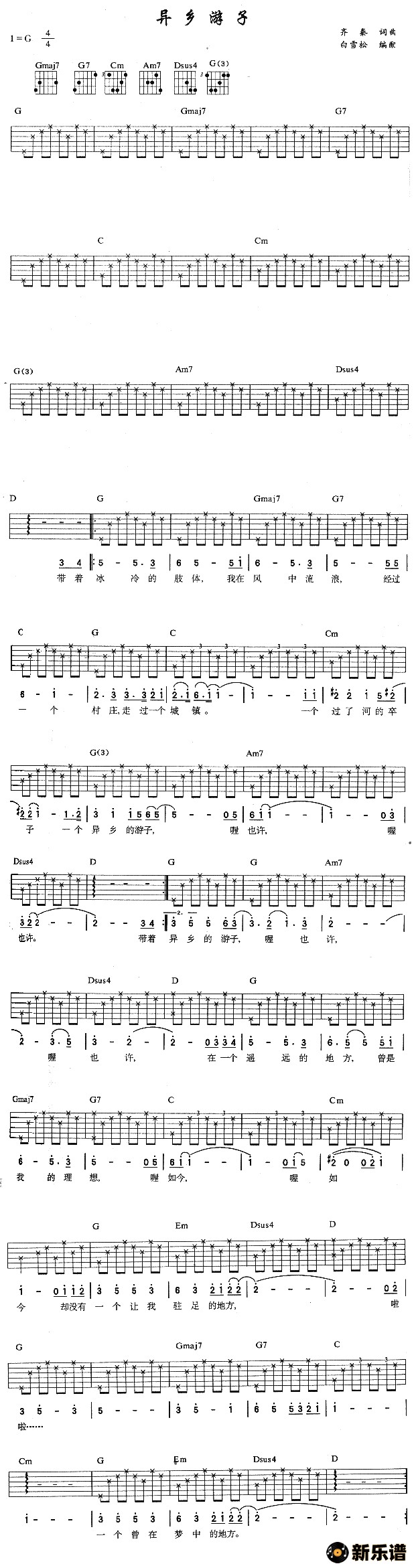 齐秦演唱的异乡游子歌词,异乡游子吉他谱.