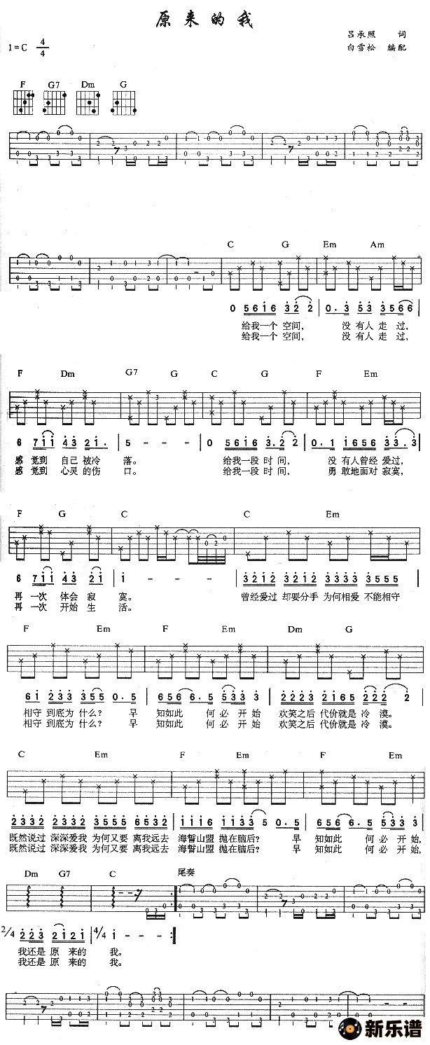 > 原来的我吉他谱