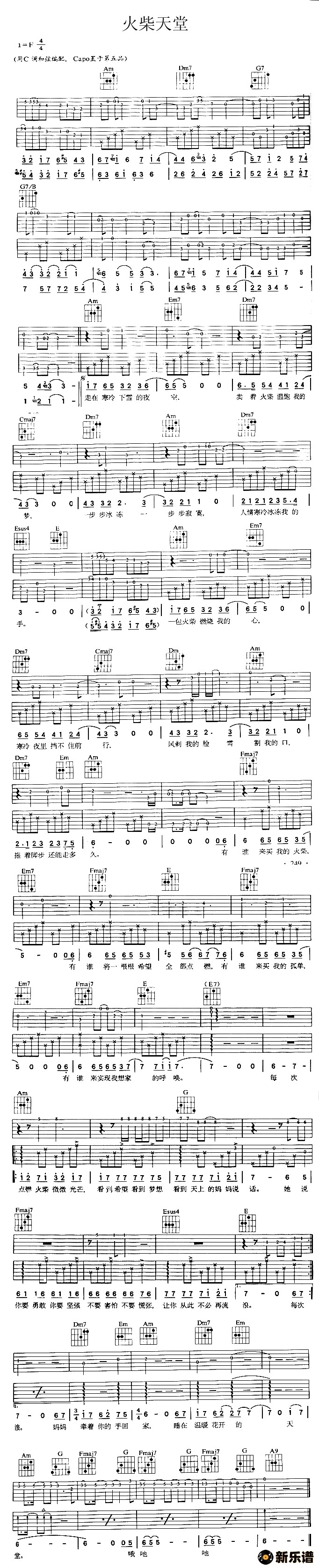 齐秦演唱的火柴天堂歌词,火柴天堂吉他谱.