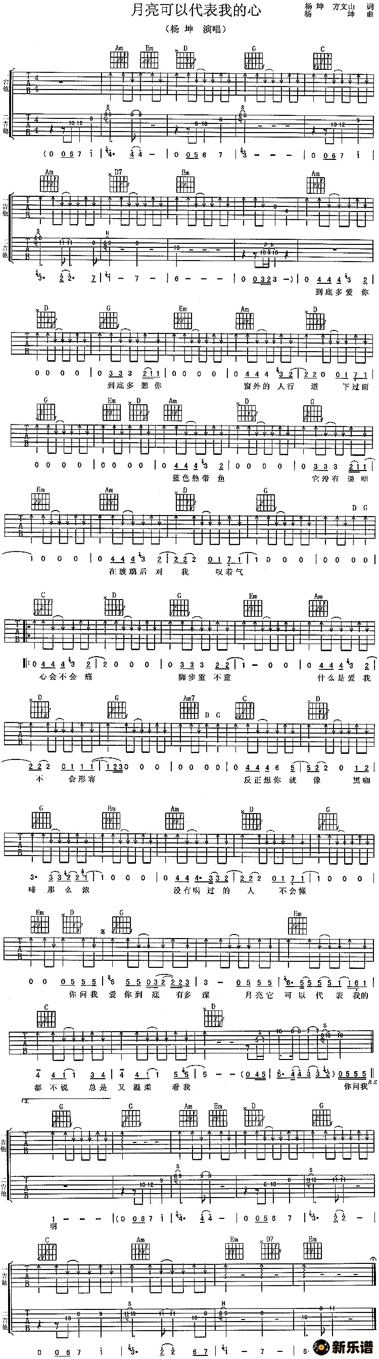 杨坤演唱的月亮可以代表我的心歌词,月亮可以代表我的心吉他谱.