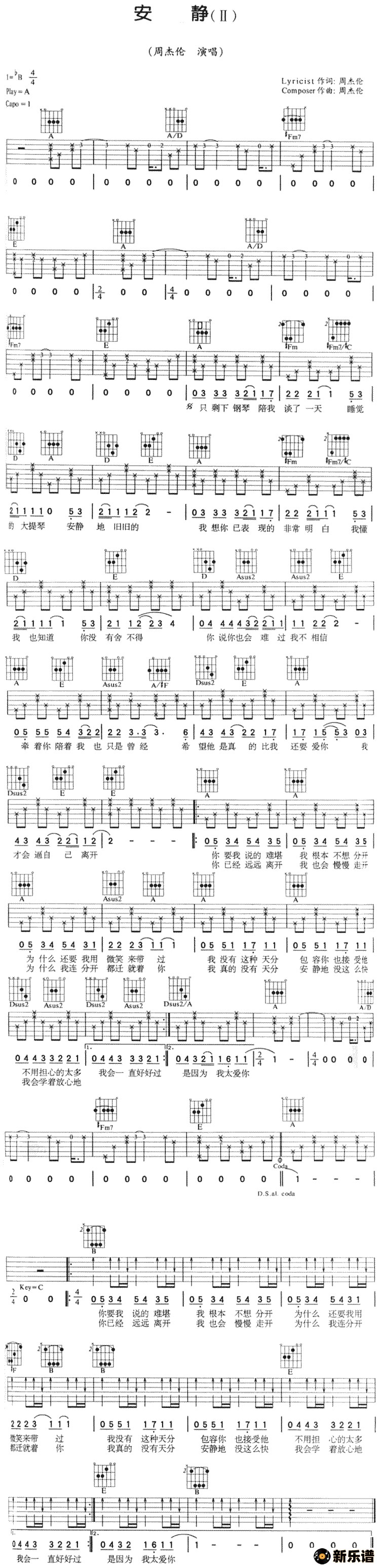 《安静》吉他谱 周杰伦