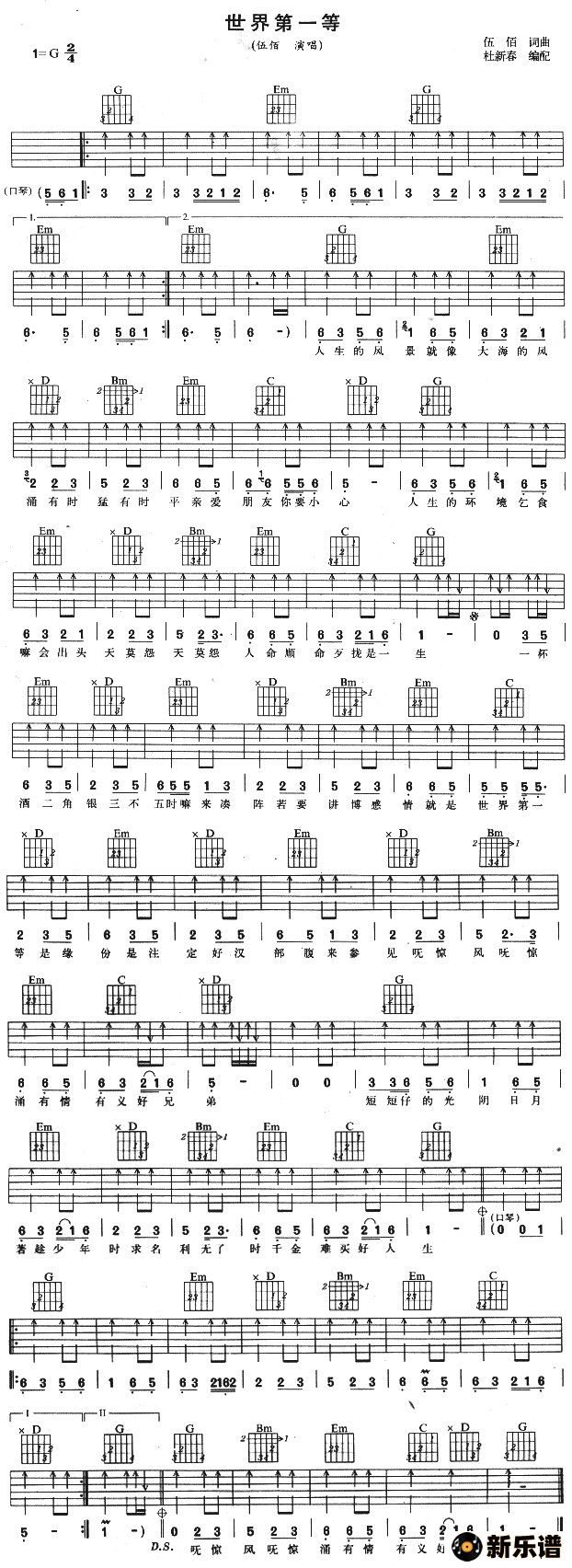 伍佰演唱的世界第一等歌词,世界第一等吉他谱.