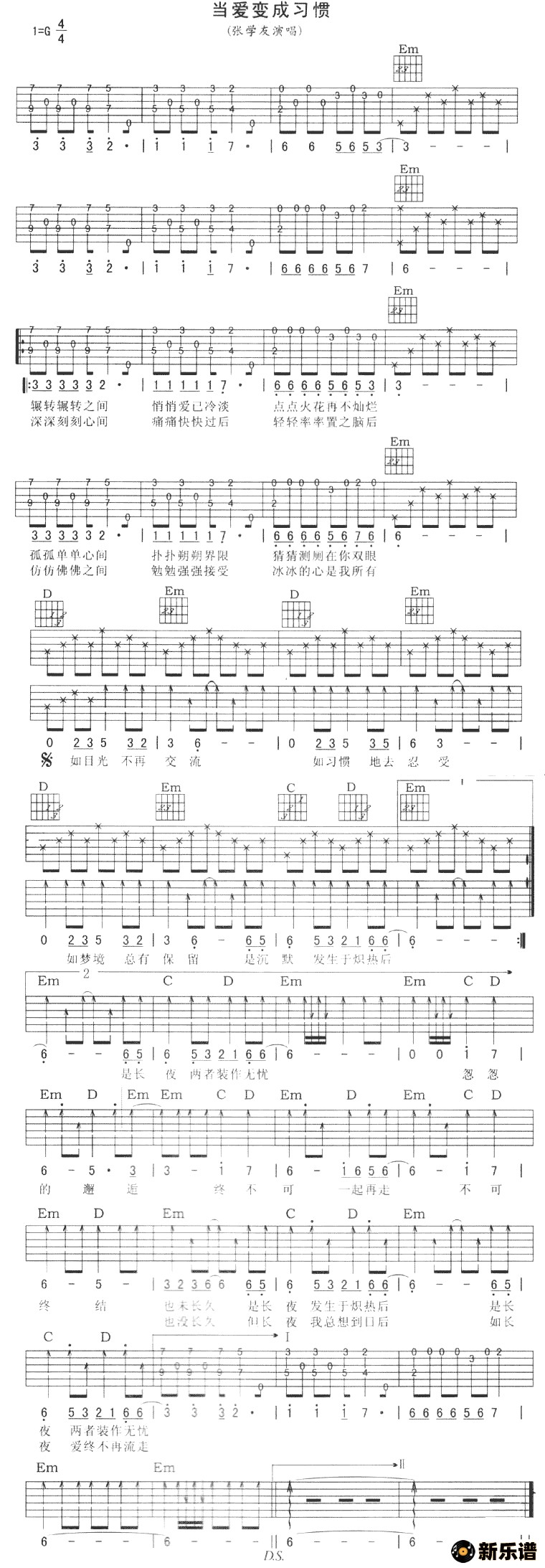 《当爱变成习惯》吉他谱 张学友