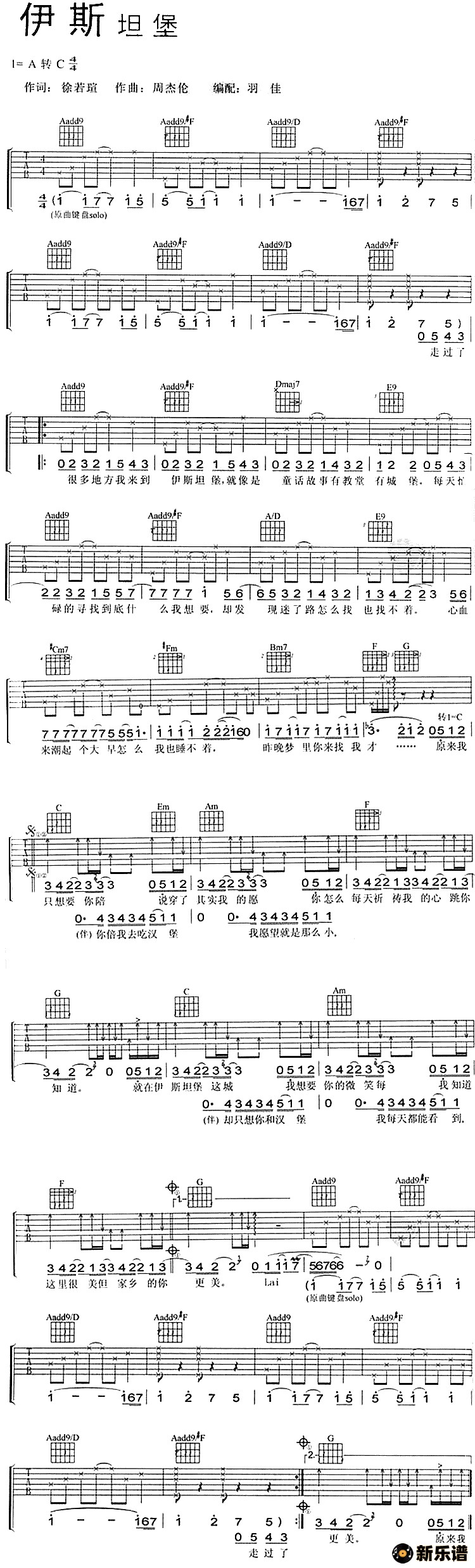 周杰伦演唱的伊斯坦堡歌词,伊斯坦堡吉他谱.
