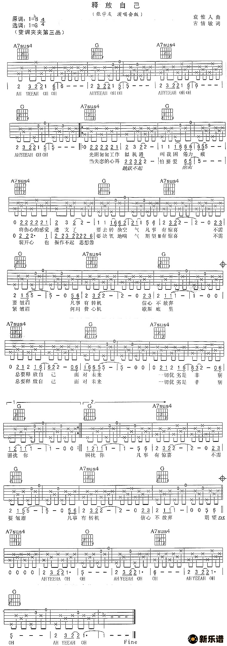 张学友演唱的释放自己歌词,释放自己吉他谱.