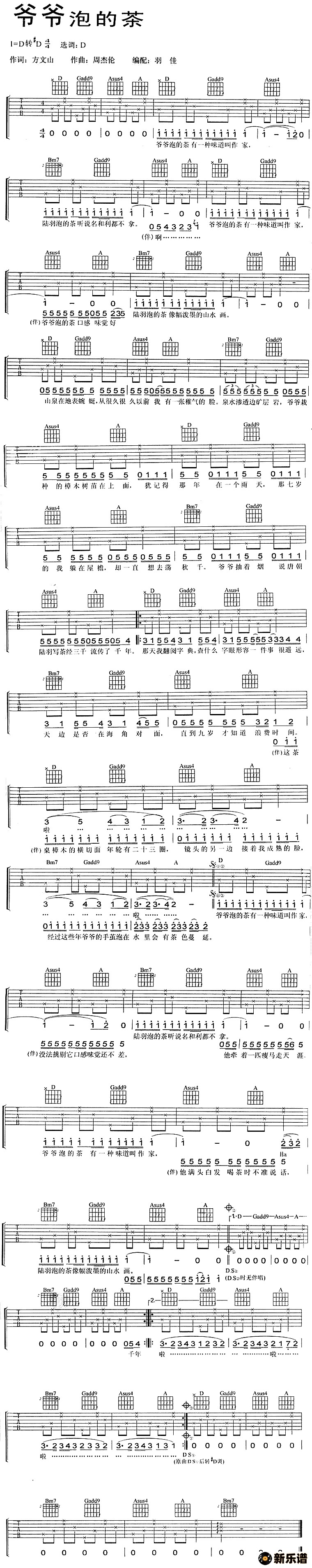 周杰伦演唱的爷爷泡的茶歌词,爷爷泡的茶吉他谱.