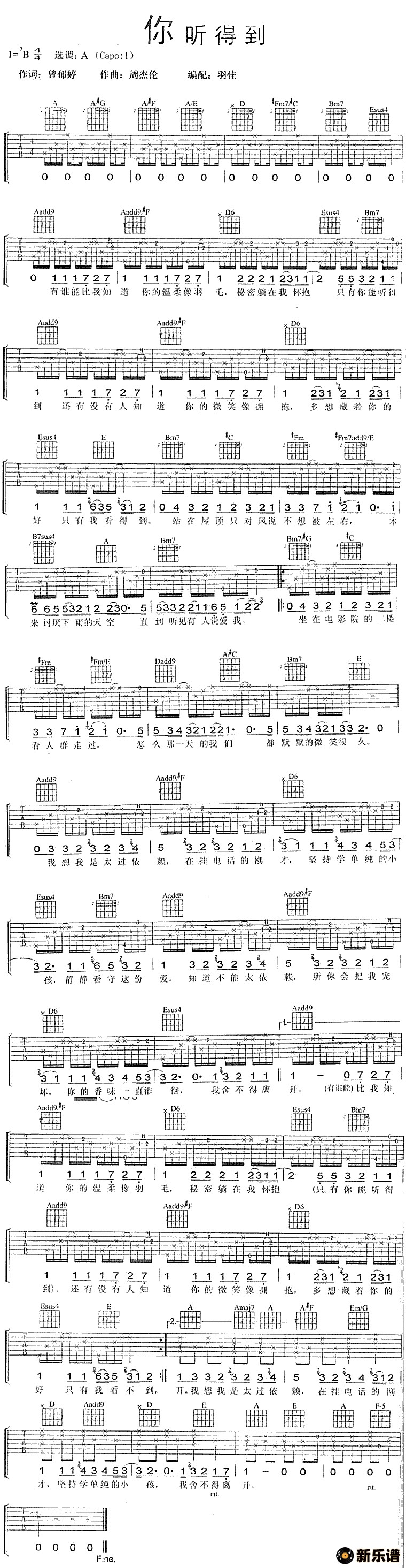 周杰伦演唱的你听得到歌词,你听得到吉他谱.