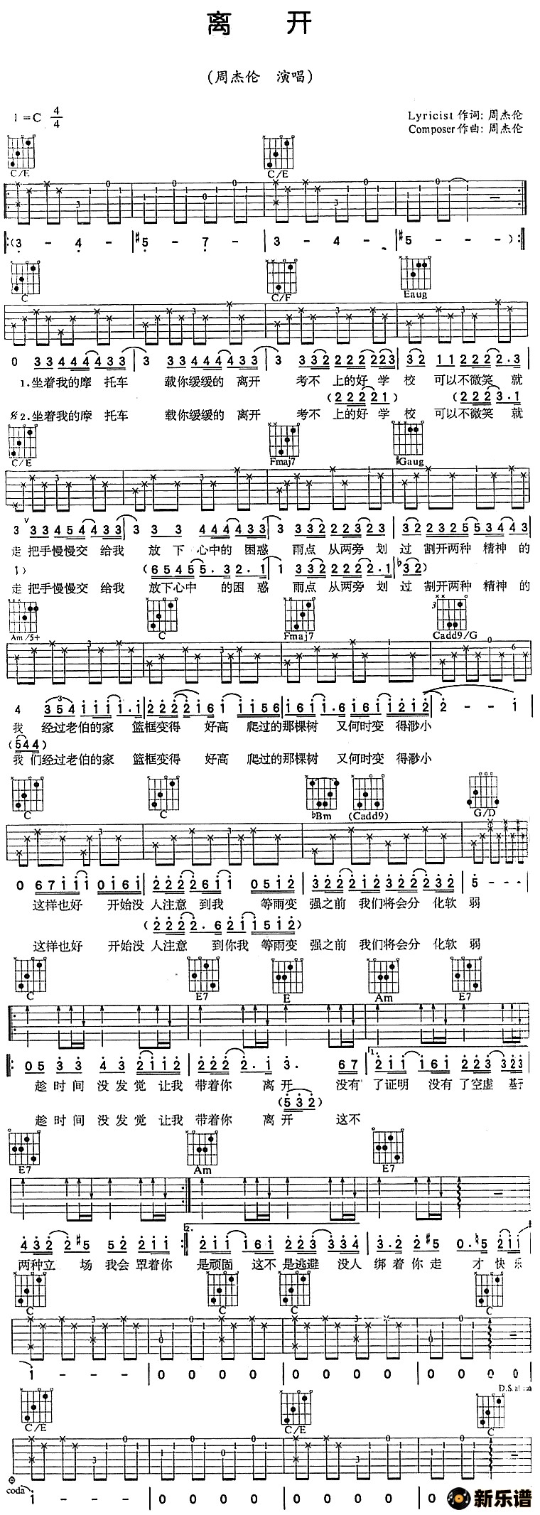 《离开》吉他谱 周杰伦