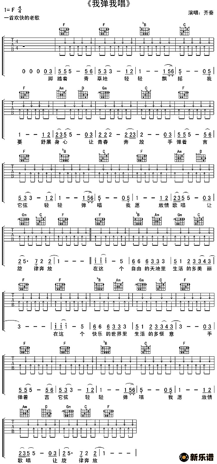 齐秦演唱的我弹我唱歌词,我弹我唱吉他谱.