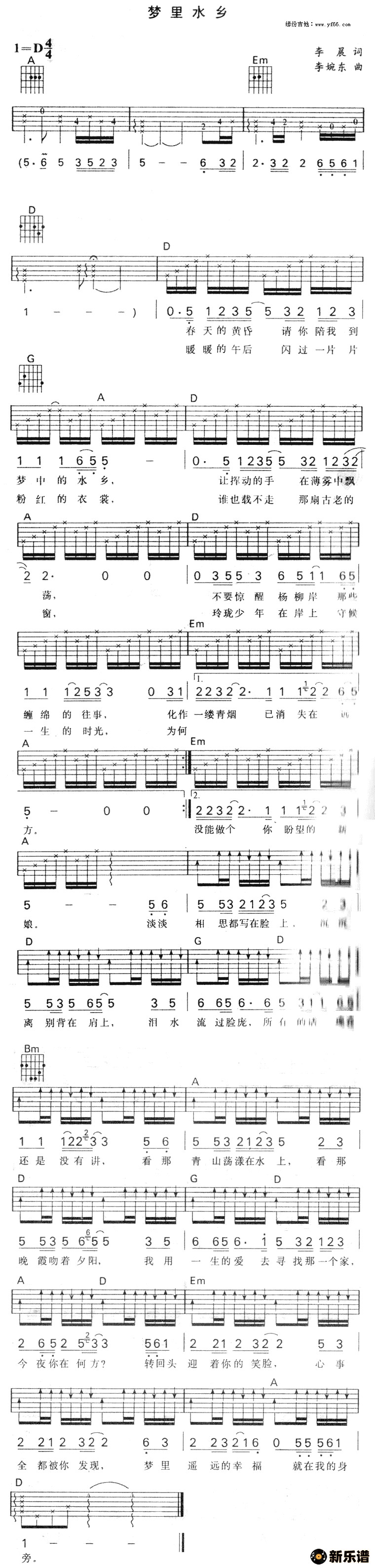 演唱的梦里水乡歌词,梦里水乡吉他谱.