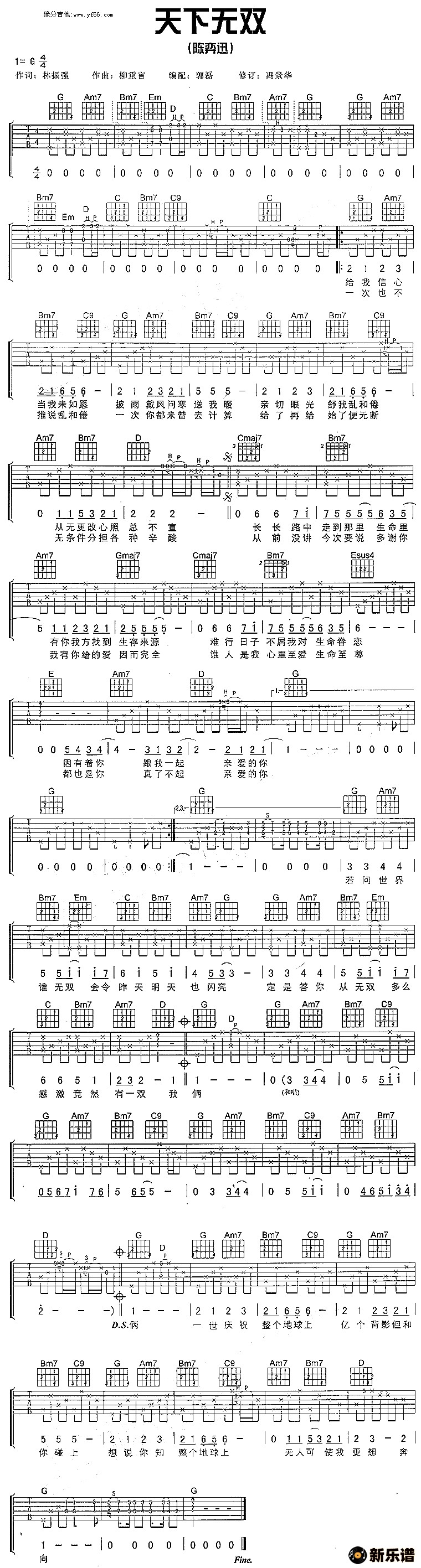 陈奕迅演唱的天下无双歌词,天下无双吉他谱.