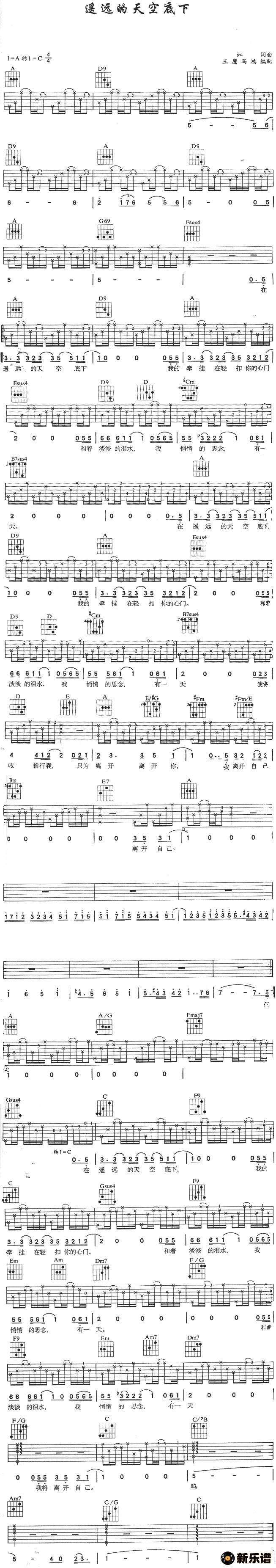 齐秦演唱的遥远的天空底下歌词,遥远的天空底下吉他谱.
