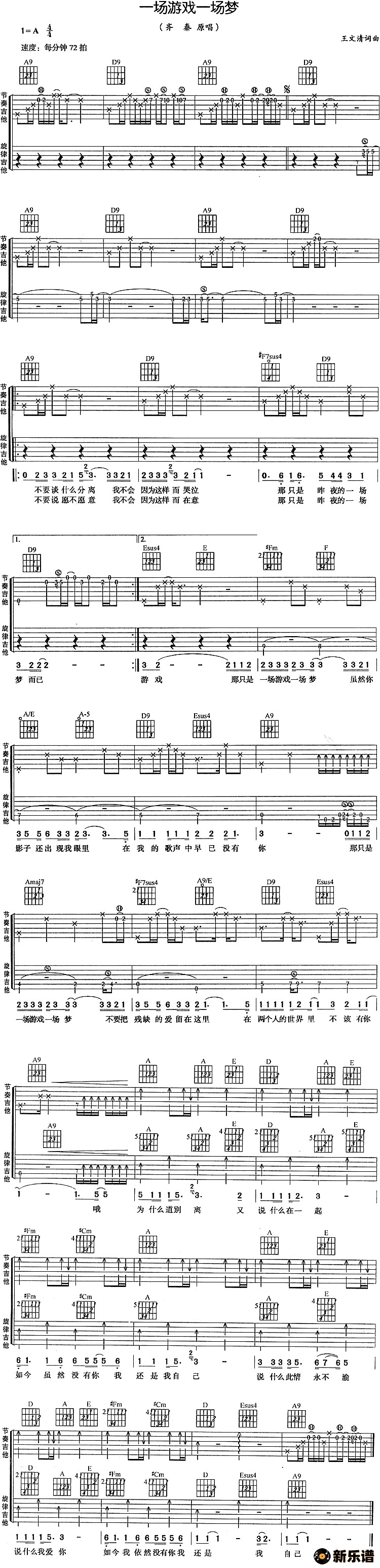 齐秦演唱的一场游戏一场梦歌词,一场游戏一场梦吉他谱.
