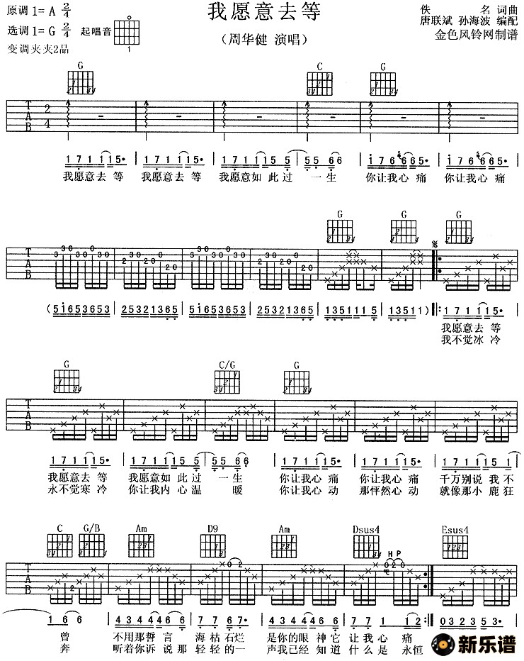 周华健演唱的我愿意去等歌词,我愿意去等吉他谱.