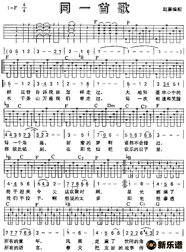 演唱的同一首歌歌词,同一首歌吉他谱.