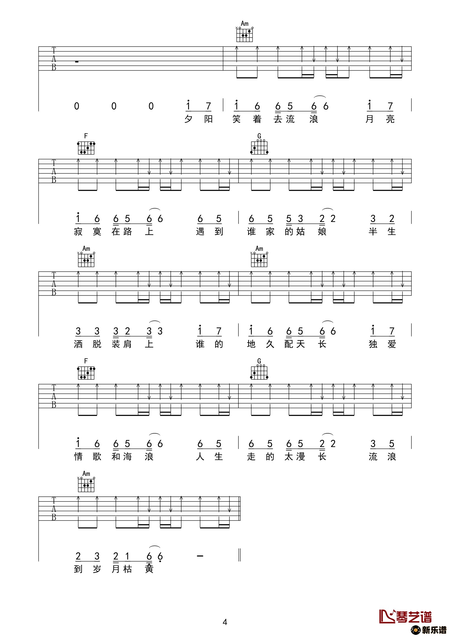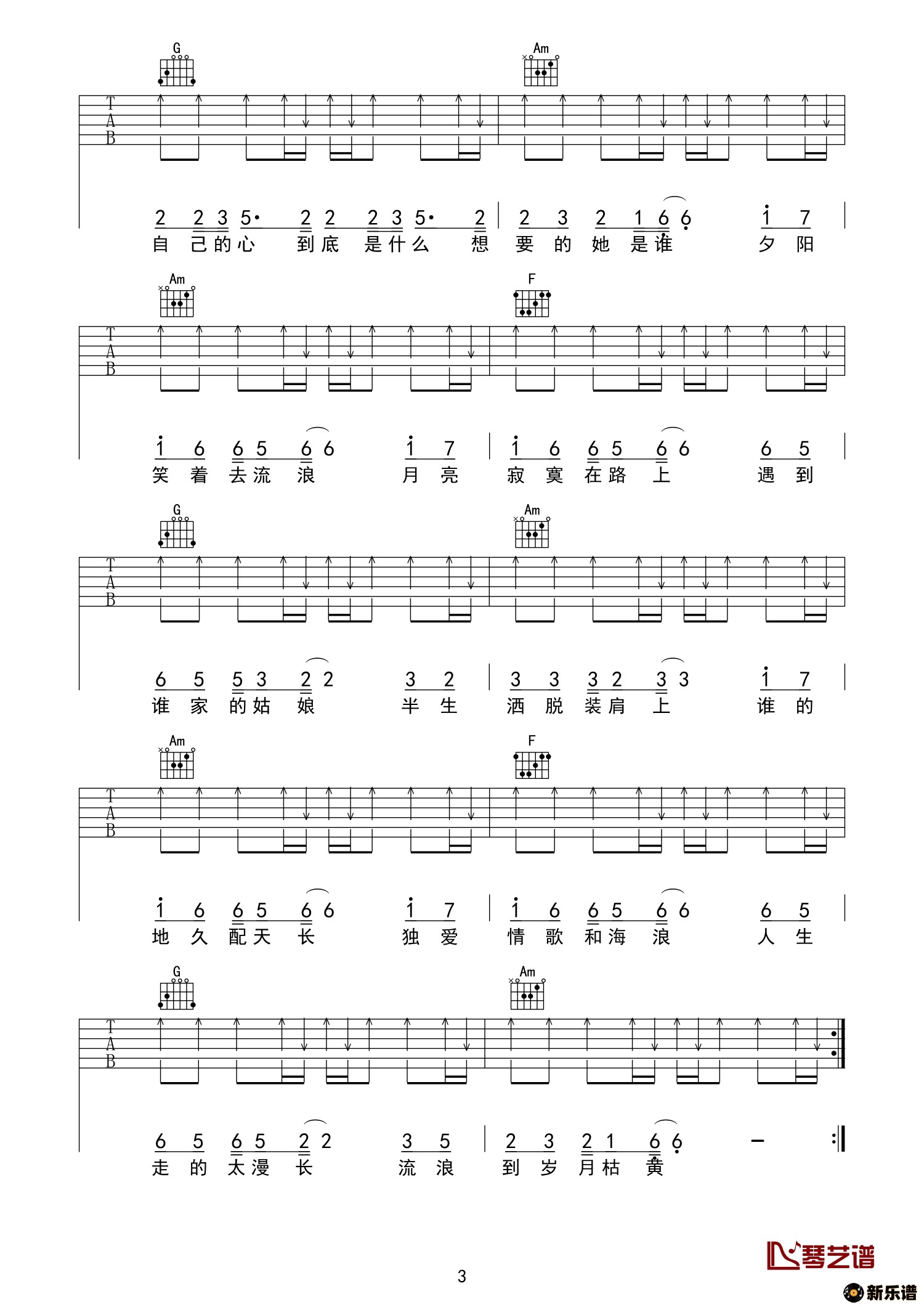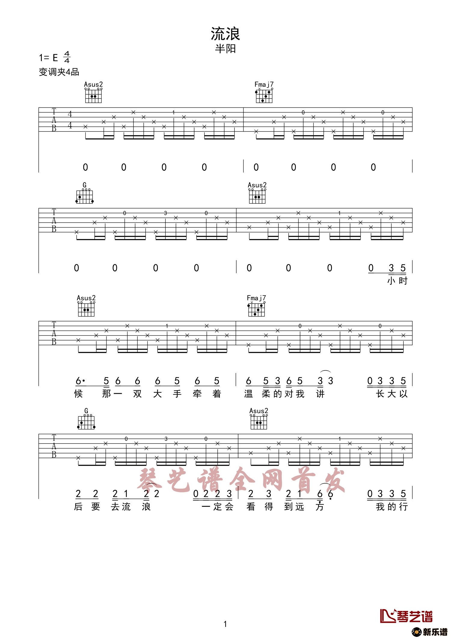 《流浪》吉他谱 半阳