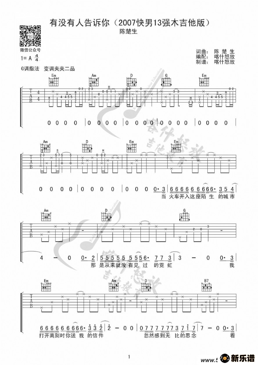 陈楚生演唱的有没有人告诉你歌词,有没有人告诉你吉他谱.