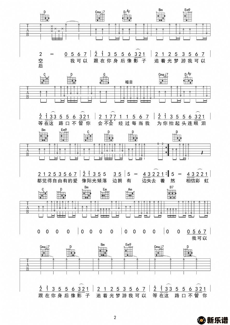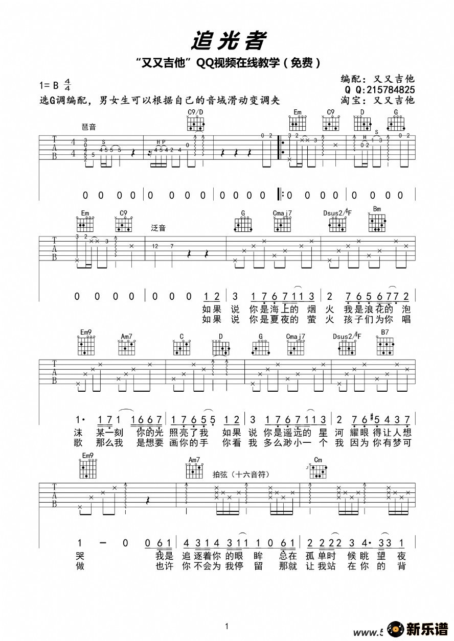《追光者》吉他谱g调入门版 岑宁儿 高音教编配吉他谱