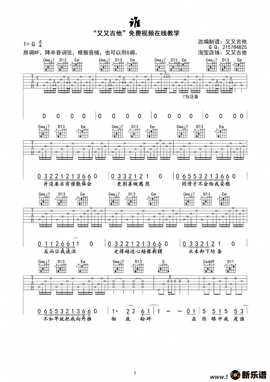 廖俊涛演唱的谁歌词,谁吉他谱.
