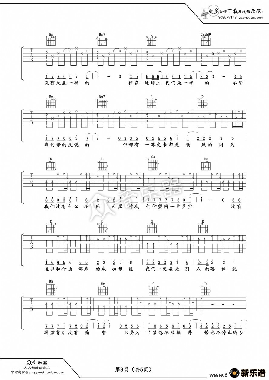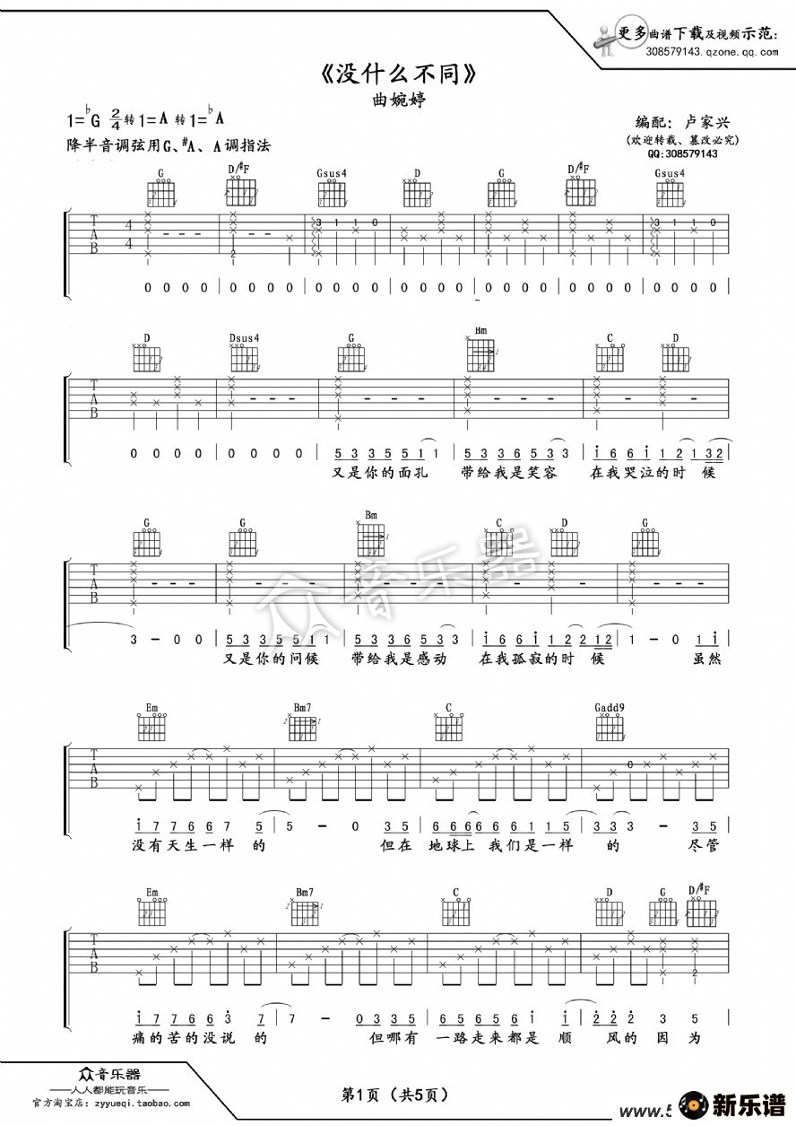 《没什么不同吉他谱六线谱》吉他谱 曲婉婷