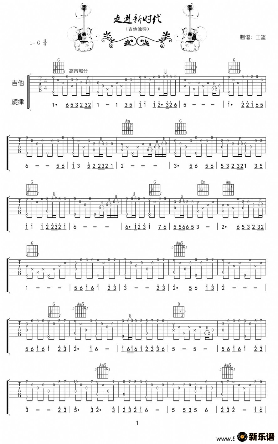 演唱的走进新时代歌词,走进新时代吉他谱.