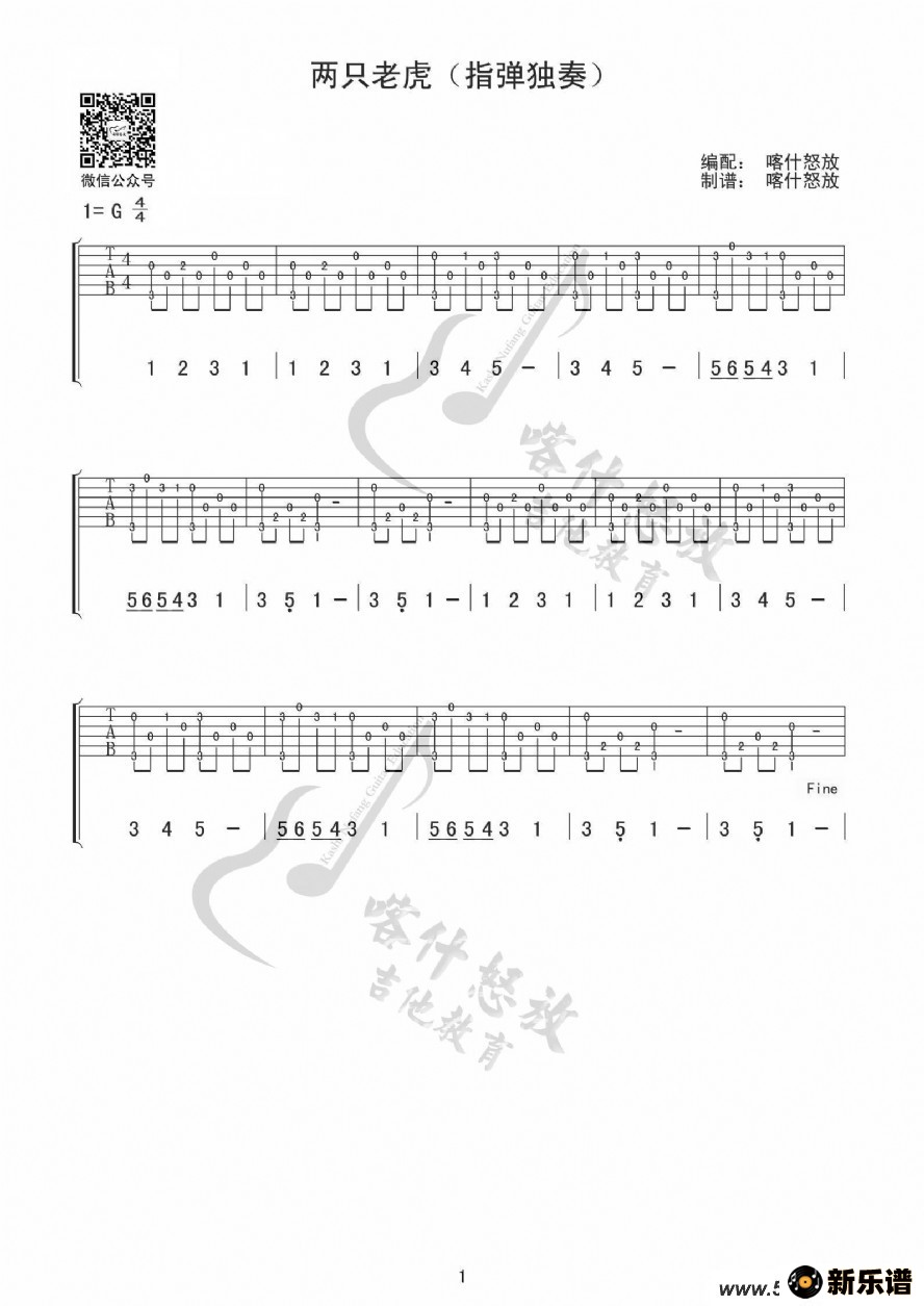 《两只老虎》吉他谱 佚名